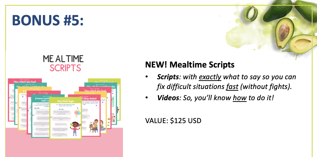 Each Phase includes short, jam-packed videos (under 15minutes each) with effective mealtime strategies to implement at home. You can watch each of the videos at your own pace (I know life with kids is unpredictable!). You'll also get downloadable Worksheets to fill in and walk you through the steps, plus Cheat Sheets with key takeaways and reminders